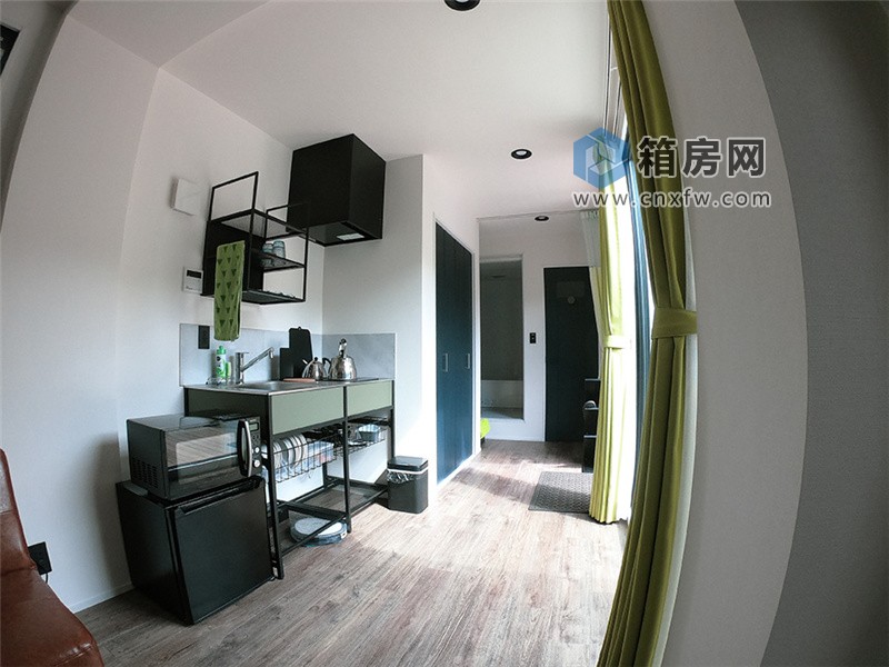 兩個 20 英尺大小的集裝箱和一個最多可容納 4 人同時居住的 L 形集裝箱房屋,配備了必要的生活設備,例如床、廚房、浴缸和廁所。擁有不遜于酒店的設施和醒目的外觀,讓住戶可以享受獨特的住宿體驗。
