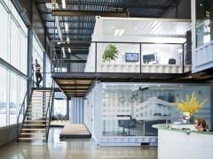 該辦公空間的設計包含了一系列在城市中脫穎而出的工業建筑,包括重復使用集裝箱作為建筑物的塊體分配器,將大面積的內外可見落地玻璃窗、金屬和結構梁等材料混合[查看詳情]