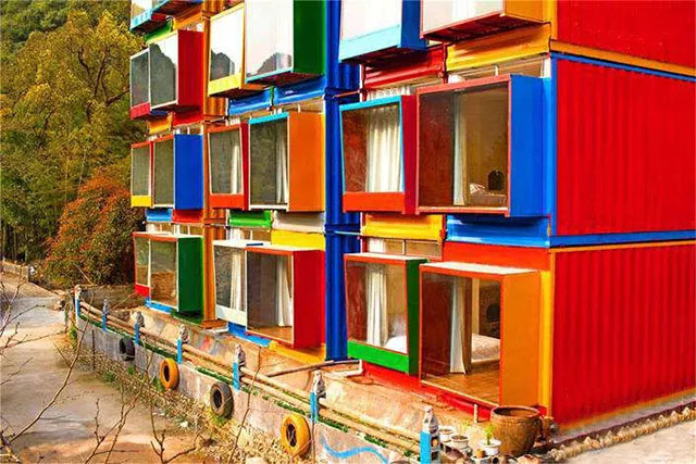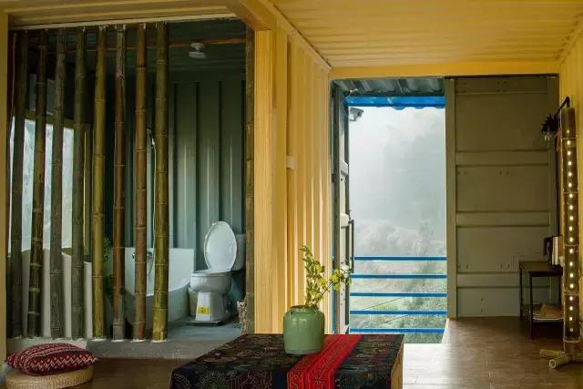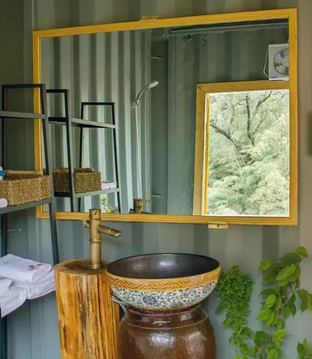 他用集裝箱搭建了一座房子,線條利落,帶有濃郁的工業風。但是在這個水墨畫的村子里卻并不顯得很突兀,集裝箱的改造既減少了對生態的破壞,也而是一種創新,健康,環保的新態度。