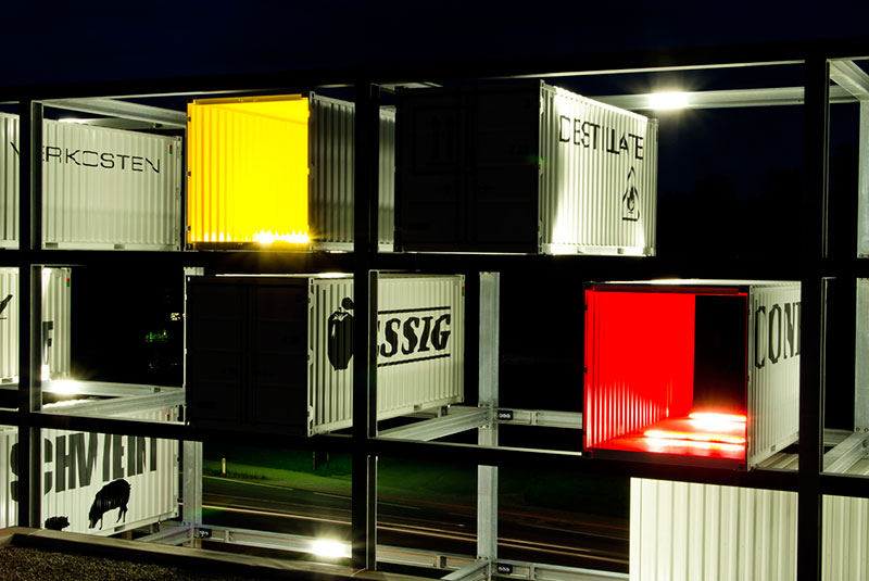 項(xiàng)目的誕生展示了建筑的設(shè)計(jì)能與公司的轉(zhuǎn)型架構(gòu)進(jìn)行連接。獨(dú)特的建筑方法(項(xiàng)目利用集裝箱建筑)在產(chǎn)生有趣的空間同時(shí),也能代表著公司的經(jīng)營理念,并提高品牌的認(rèn)識價(jià)值。