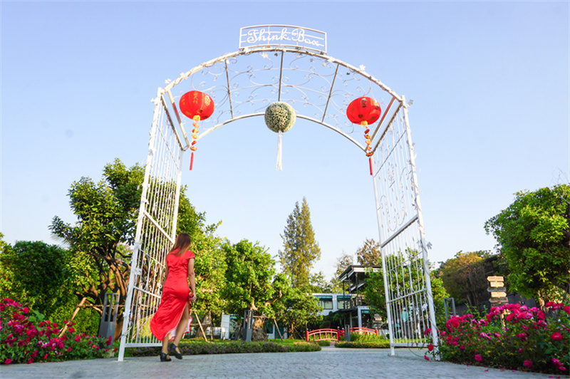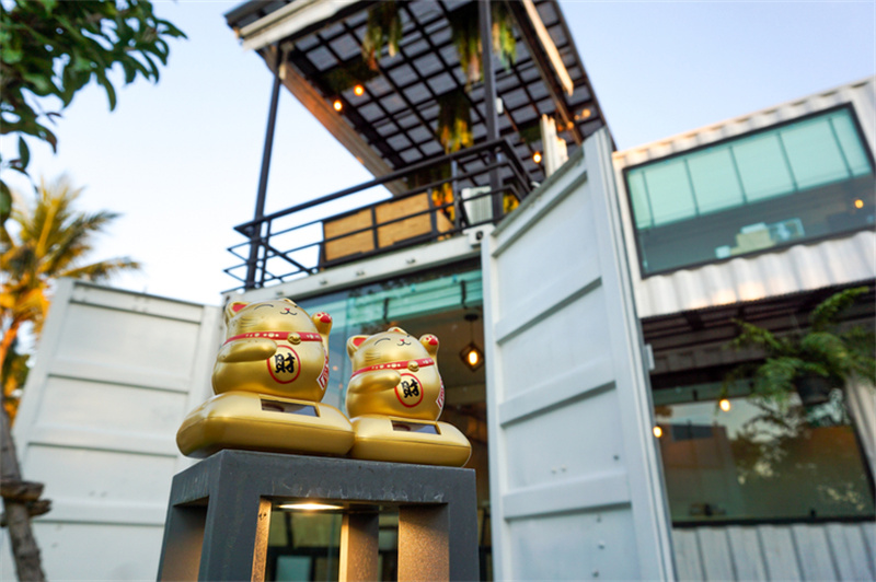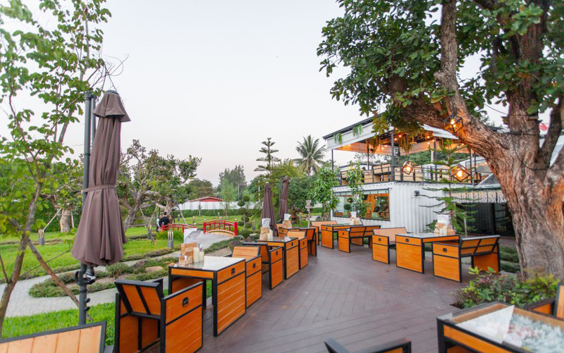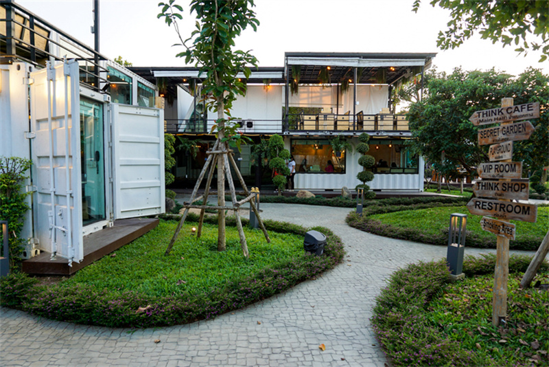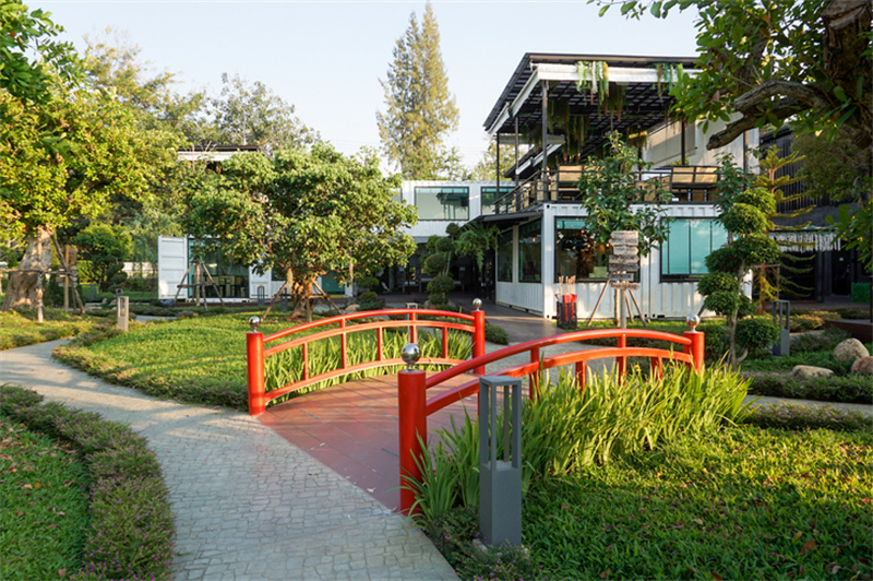 Think Box集裝箱餐廳位于清邁附近的省份,交通十分便利。這家店被設(shè)置在一個英式花園的中間,擁有私密區(qū)域并帶有一點日本氣息,那座紅色的橋是打卡的熱門景點。該商店的老板曾從事建筑業(yè)務(wù),因此該餐廳也被打造得如同一家園藝店。