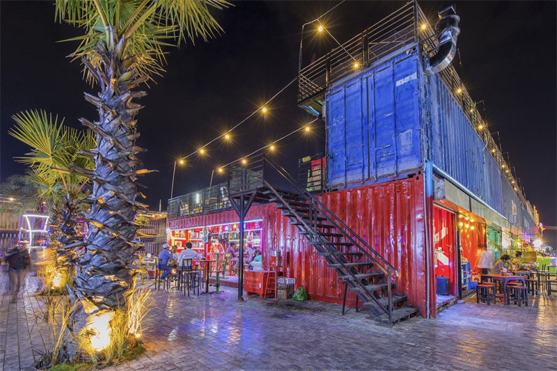 這些集裝箱經過藝術設計和組合,不僅可以容納當地的服裝品牌、各種配件和小玩意,還可以容納餐館,酒吧,兒童公園和游戲區,現場音樂表演舞臺尤其是在夜間,可以增強其商業活動氛圍。