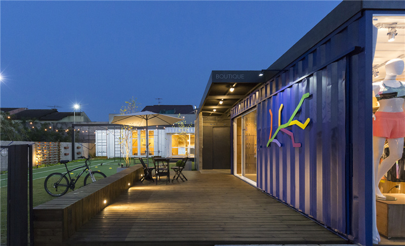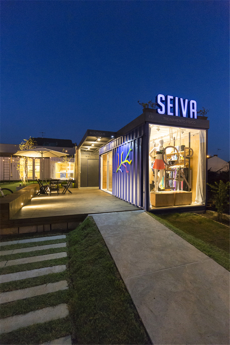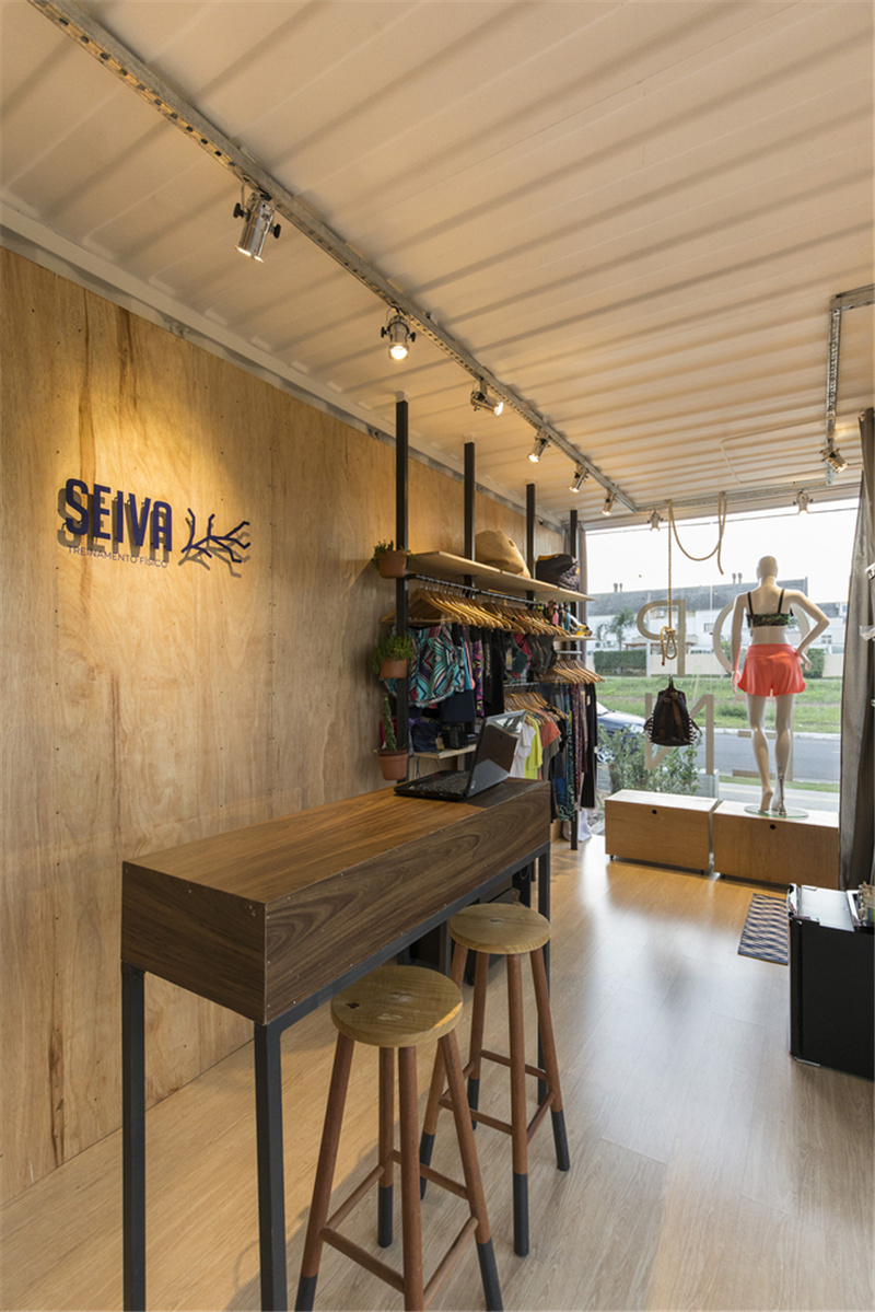 這原本是一片荒蕪的地皮和幾個廢棄的容器,經過活化改造之后變成了一個集裝箱健身中心。選址位于混合的住宅社區中心,旨在讓附近的居民可以了解到健康運動的生活新概念。建筑的最前方首先是一個擁有醒目招牌的商品店,精美的展示櫥窗對外開放,擺放各種運動用品吸引路人的眼球。