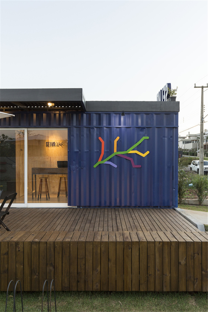 室內裝潢也同樣遵循簡單性原則,容器內部襯有海洋膠合板和植樹造林的松樹,覆蓋生態瓷磚,并用玻璃纖維進行熱防護。電氣裝置全部裸露在天花板上,增強了工業真實性的美學魅力。地面鋪設了泡沫地墊,以增加舒適性。