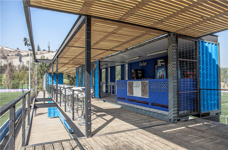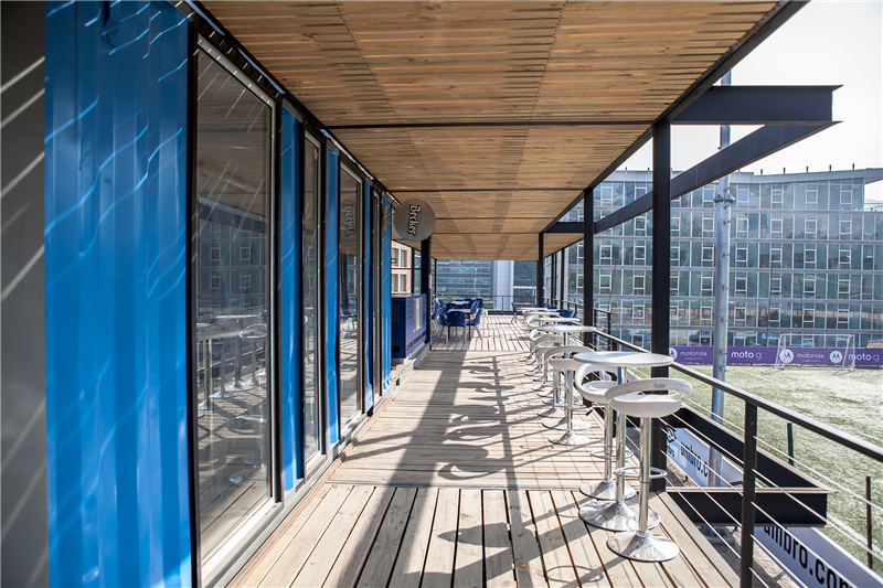 由集裝裝修打造的獨(dú)特工業(yè)風(fēng)建筑,球場配套設(shè)施讓人們有一個舒適的觀賽體驗,結(jié)合當(dāng)?shù)爻鞘械慕ㄖL(fēng)格,給人們一個理想的愜意環(huán)境。