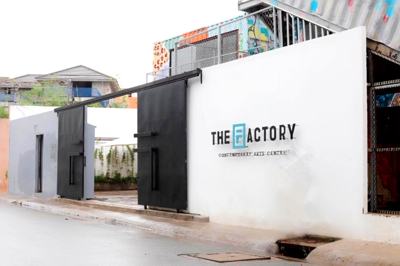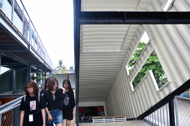 THE FACTORY 現(xiàn)代藝術(shù)中心,位于越南西貢。THE FACTORY 現(xiàn)代藝術(shù)中心,意在打造更貼合當(dāng)?shù)厍嗄甑漠?dāng)代藝術(shù)空間,并發(fā)更多創(chuàng)意和藝術(shù)活力,活化整個(gè)城市街區(qū)。中心的門口處是海運(yùn)集裝箱打造的通道樓梯,體墻面有THE FACTORY 現(xiàn)代藝術(shù)中心的醒目logo鏤空窗,令人印象深刻。