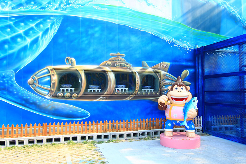 全臺灣最高的3D彩繪集裝箱在嘉義市,由知名3D彩繪藝術(shù)家圖龍所創(chuàng)作。就是你現(xiàn)在看到的這個巨型金剛,其身高高達9米,由4層集裝箱不規(guī)則堆疊而成,一旁還有皇宮般的海底世界,加長加寬,打造了令人震撼的3D效果,看到的路人紛紛拍照上傳社交平臺,使它一躍成為周邊游的新亮點。