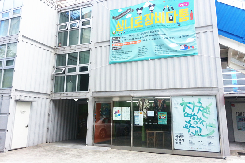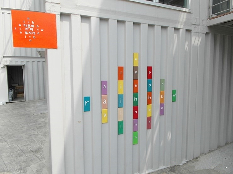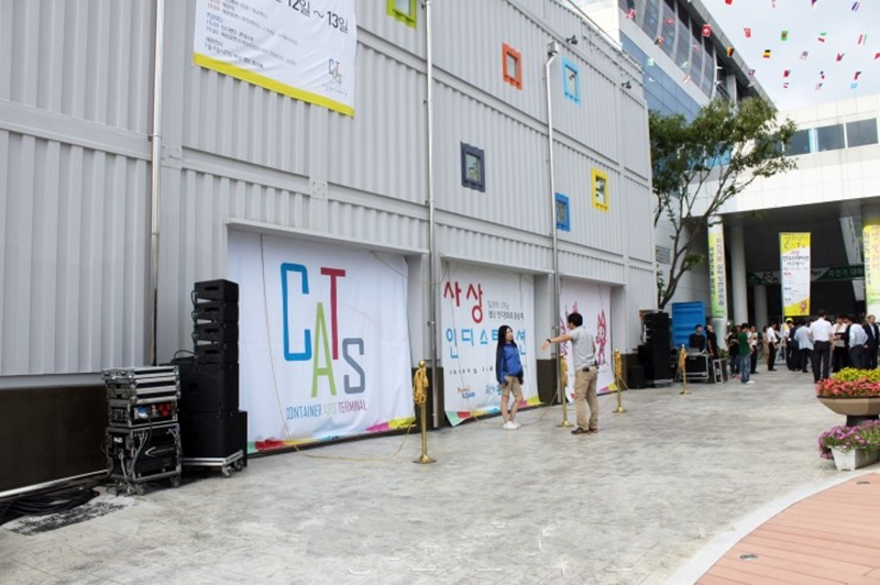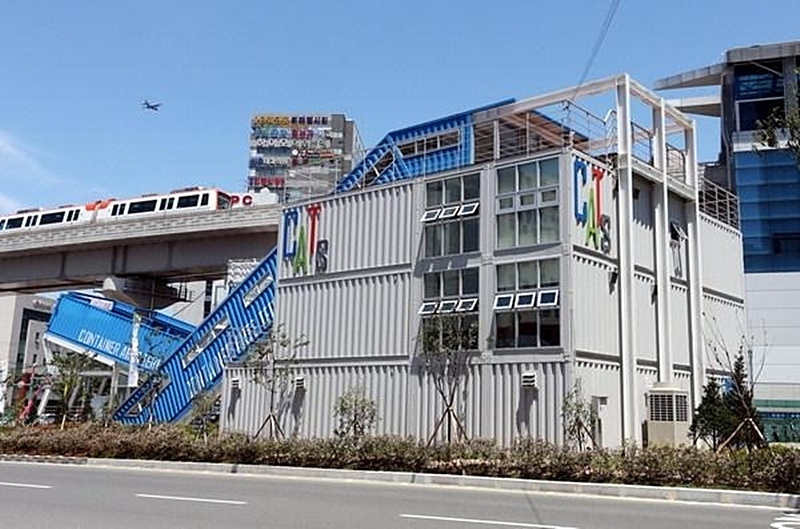 釜山至金海的輕軌中轉站沙上站前的廣場,曾是個不起眼的地方,在歷經數年打造后,由數十個集裝箱組成的文化藝術空間于2013年5月宣布誕生。集裝箱藝術中心(CATs)”,為給在韓國全境篩選出的集裝箱賦予地域性元素,特意選定“沙上”作為舉辦地。