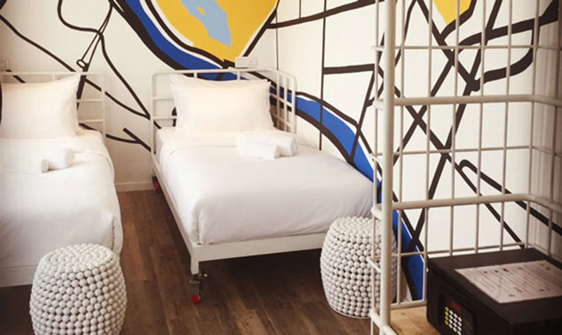 這些房間是從舊的集裝箱中發展出來的,反映了該地區的創新和高科技。白色涂層的集裝箱用作住宿房間,彩色涂層的集裝箱則是餐廳。集裝箱住宿都是二層設計,提高土地利用率,同時為走廊添加一些休閑區,再加上房號標志的涂鴉,使得原本單調的住宅多了一些俏皮。