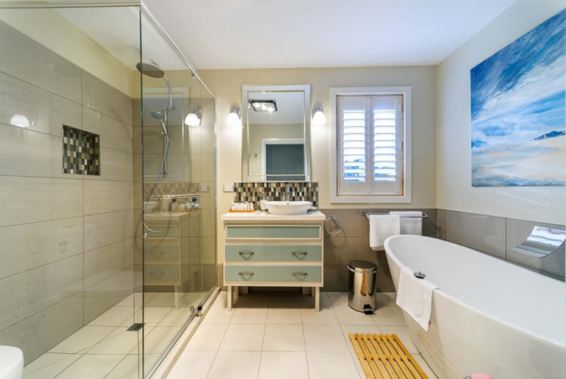 有別于其他集裝箱房屋為了節省空間而劃分的狹小衛浴間,這座別墅顯然比較“大方”,衛浴間內不僅寬敞明亮,有獨立的窗戶,還同時設置了淋浴間和泡浴缸,滿足你的不同需求。