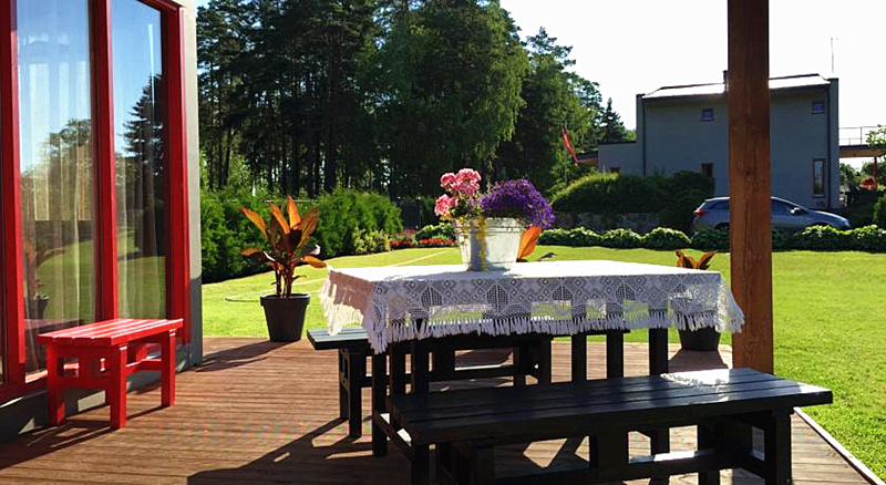 最讓人為之欣賞的是屋外的露臺,幾張木桌椅放置在墊高的木平臺,遮陽布安裝在頂部避免太陽直曬,各個角落放上各種盆栽,很是養眼,閑來沒事在屋外坐著欣賞周圍的景色也不失為一種享受。