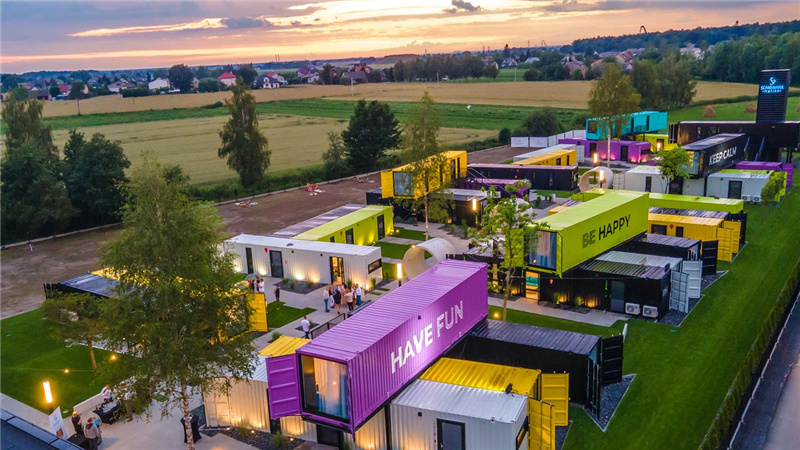 以集裝箱架構(gòu)開發(fā)的住宿項目通常容易吸引人們的青睞,今天說到的是一個由集裝箱模塊化建筑打造的主題酒店,該酒店坐落在一個池塘旁,靠近自然保護區(qū),也靠近大型游樂園。