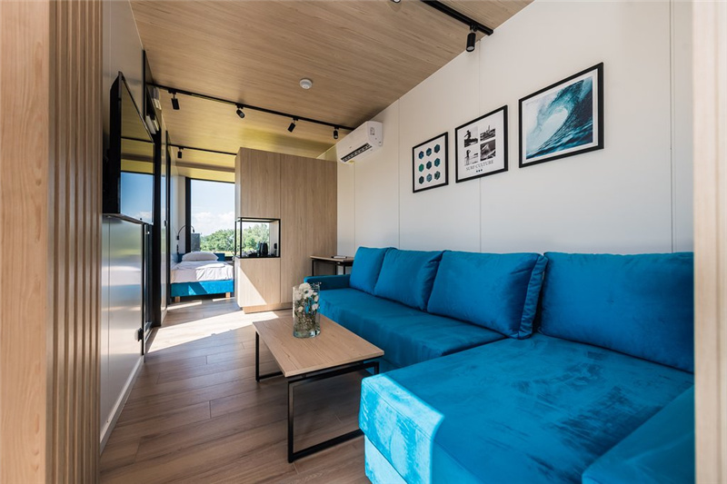 所有的居住空間都集成在集裝箱內(nèi),每座獨立的集裝箱建筑都擁有上下兩個單元,每個空調(diào)房間都可容納2至6人,同時,每個套房都擁有一個起居空間、一個睡房以及一間浴室。酒店區(qū)由接待亭、帶酒吧的海灘、游樂場、排球場等共同構(gòu)成生活娛樂環(huán)境。