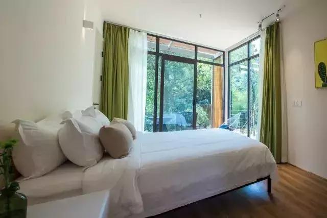 每間房間都能透過寬敞明亮的玻璃拉門和落地窗,睜開眼就能觀賞到窗外的美景,一望無際的綠,一覽無余。