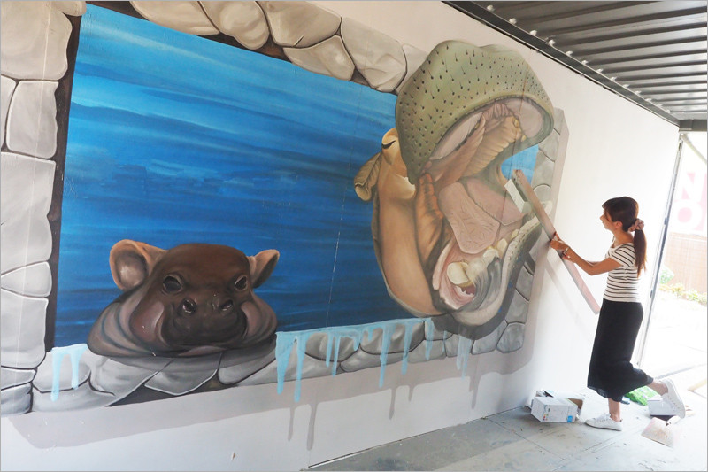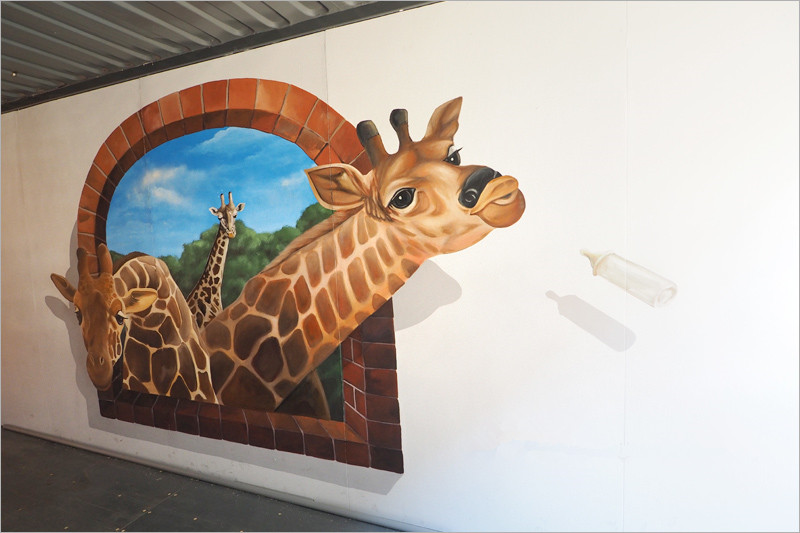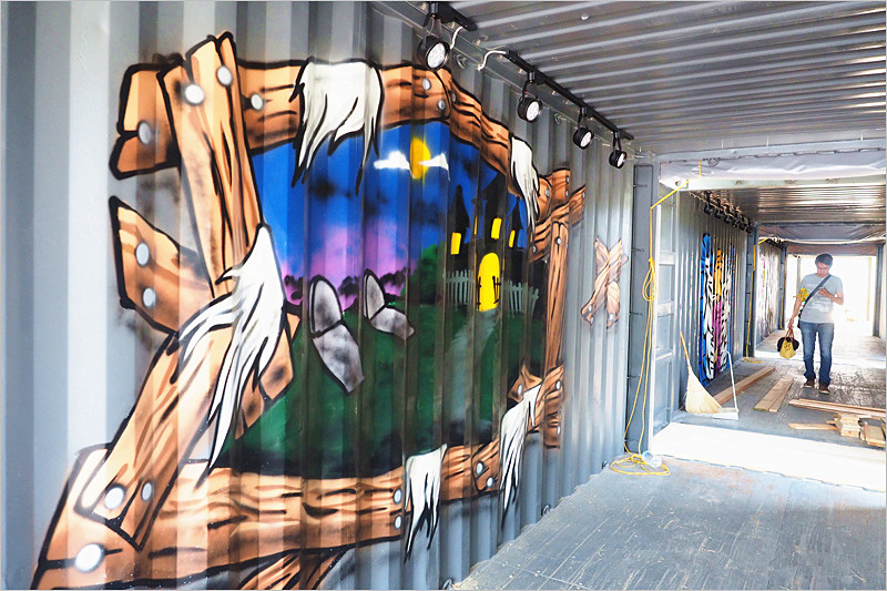 整齊的集裝箱環(huán)繞著小區(qū),有的集裝箱內(nèi)部墻面都是3D仿真彩繪,許多游客都忍不住和他們拍照留念,十分有趣;有的是對外開放的小餐廳,內(nèi)部擺上桌椅等設(shè)施,外面的路人也可以在此享用休息。