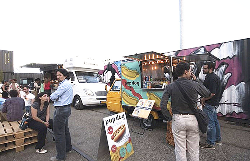 沿步行道的休息區為行人提供休息空間,同時也有助于增加其社交功能。開敞的周邊環繞著木桌木凳以及集裝箱,用以布置各種零售店以及餐飲。這里不定期會舉辦各種各樣的活動,周末還有特色市集、街頭藝人表演等,可以享用免費wifi。