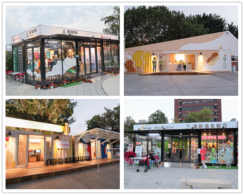 花展的一個服務區,為游客打造了一個集裝修旅客服務中心、售票亭、急救站、志工室、哺集乳室等5種造型各異的機能集裝箱服務區,旨在為游客提供便民服務。