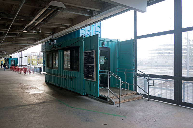 這里最初只是作為倉庫而建造的,但在房地產(chǎn)投資公司的接管之下,它現(xiàn)在已經(jīng)成為了一個商業(yè)基地,包括各種理發(fā)店、餐飲店、手工藝作品店等。作為耗資1億美元的改造項目,這里擁有許多集裝箱改造而成的小店,每個集裝箱的高度為9'6,長20',寬8',總長約160平方英尺。