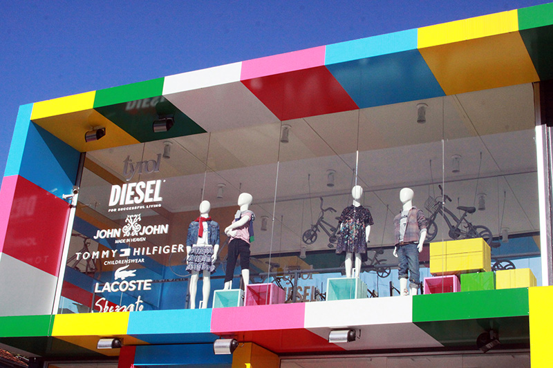 由集裝箱搭建出的充滿活力色彩的櫥窗。