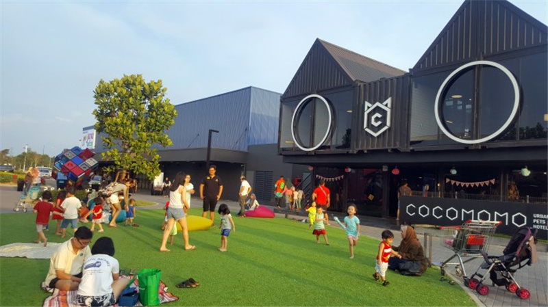 大型商圈落成的形式多樣,其中建筑選材也是亮點設計之一。以集裝箱為基本建筑結構,總體規劃為215公頃的旗艦鎮以生活方式為導向,打造了集飲食、娛樂、運動、休閑等為一體的大型商圈,成為了馬來西亞特色的集裝箱公園。