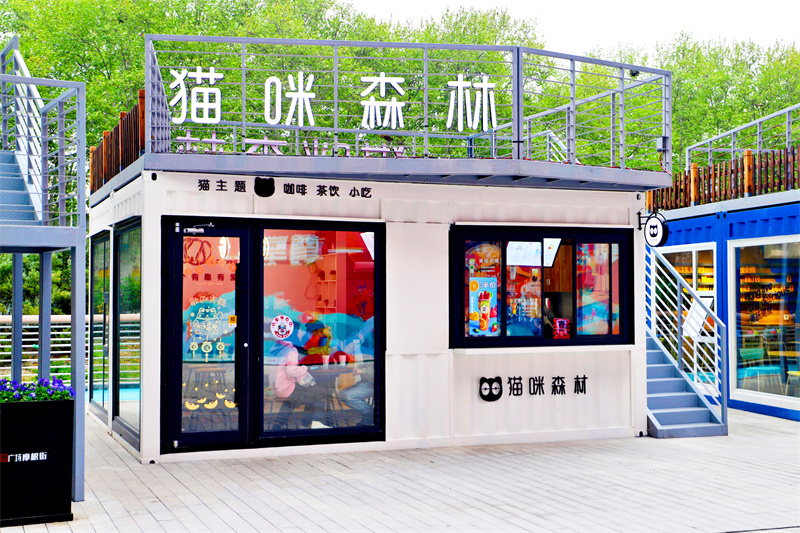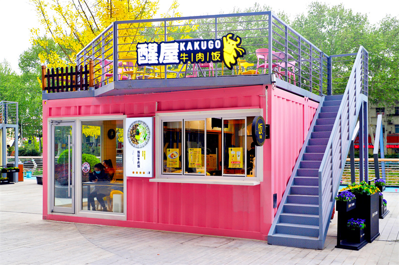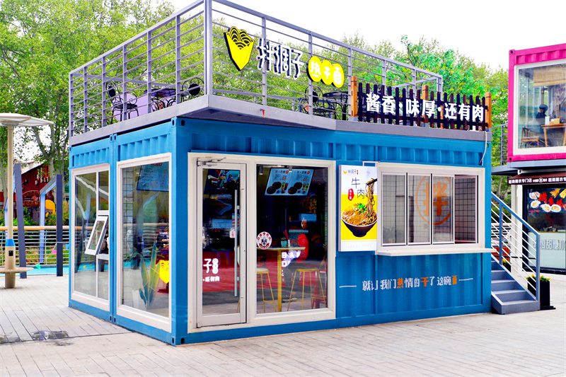 目前市面上有很多家餐飲店選擇集裝箱商鋪進(jìn)駐,從小吃、飲料到快餐店、咖啡館,它們都幾乎選擇了不同的店面外殼顏色,這些五顏六色的箱子在河邊一字排開,形成了一道靚麗的風(fēng)景線。