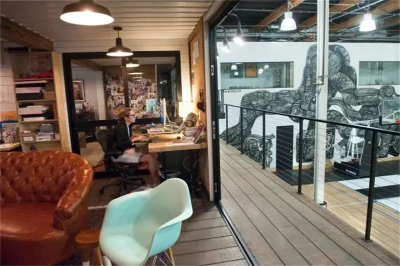 也還有一面“藝術墻”,擺滿個性的壁畫、木架和陳列摩托車,為辦公室打造了獨特一角,營造了更濃郁的藝術氣息。訪客到訪可以參觀,而員工也可以得到熏陶,實在是一舉兩得。