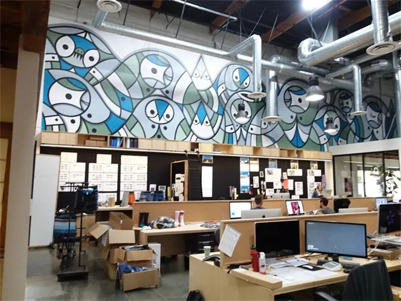 看到這里,你大概也知道了這個辦公室的主體風格了——涂鴉街頭,正好與籃球的街頭風不謀而合。在各個角落的墻面上,隨意的線條卻搭配出絢麗的畫面,大概只有涂鴉才有這種魅力了吧!