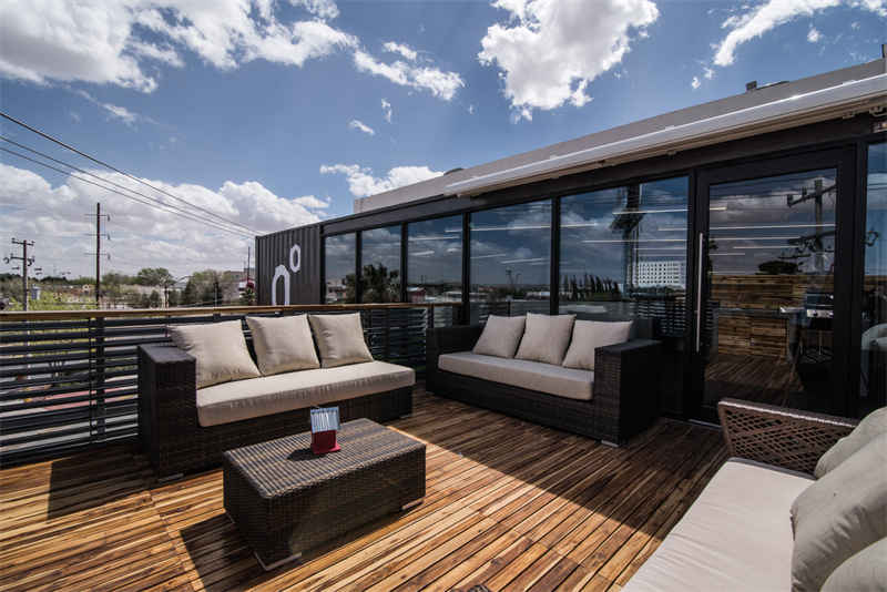 此外,辦公樓的頂部還有一塊室外的活動區(qū)域,是一個露天陽臺。布局也與室內(nèi)相似,主要追求舒適的享受。
