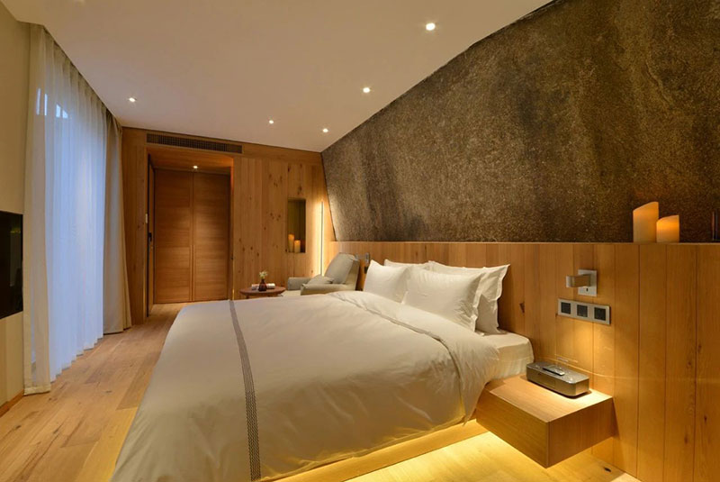 穿過(guò)一條砂石鋪就的小徑,一邊是巖石一邊是竹籬,在溫暖的燈光里就看到酒店的房間。那廂——酒店的名字,讓人聯(lián)想起生活的彼岸。把巖石像朋友一樣請(qǐng)到房里,與自然對(duì)話,在這家酒店的設(shè)計(jì)師鄭磊看來(lái),自然才是最好的設(shè)計(jì)師。先放下設(shè)計(jì)的企圖心,去充分理解大自然這個(gè)作品的構(gòu)思,然后去順應(yīng)自然,把自然融入進(jìn)來(lái)。