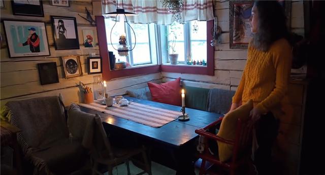 上圖這間小屋僅有50㎡,屋子里沒有供電,且如果想要喝水的話,也必須要去最近的一條小溪去打水。但是,夫妻倆人倒是有一快太陽能板,用來給他們的拍攝設備充電,但是天氣不好的時候,常常是24小時停電狀態。另外,這棟小木屋離最近的商店要16公里,離最近的城市要100公里!可謂是非常原生態的家了……