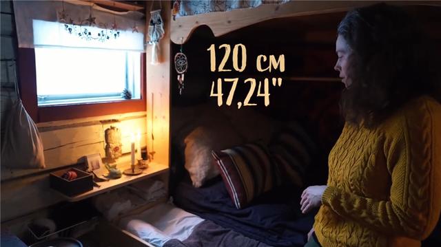 來到一旁的睡眠區,這里在屋外大雪紛飛的時候顯得格外溫暖,一張1.2米的小床睡下了夫妻倆人,難免有些擁擠。他們還在旁邊給剛出生的孩子準備了一張小床~在燭火的點染下,倍感溫馨愜意。